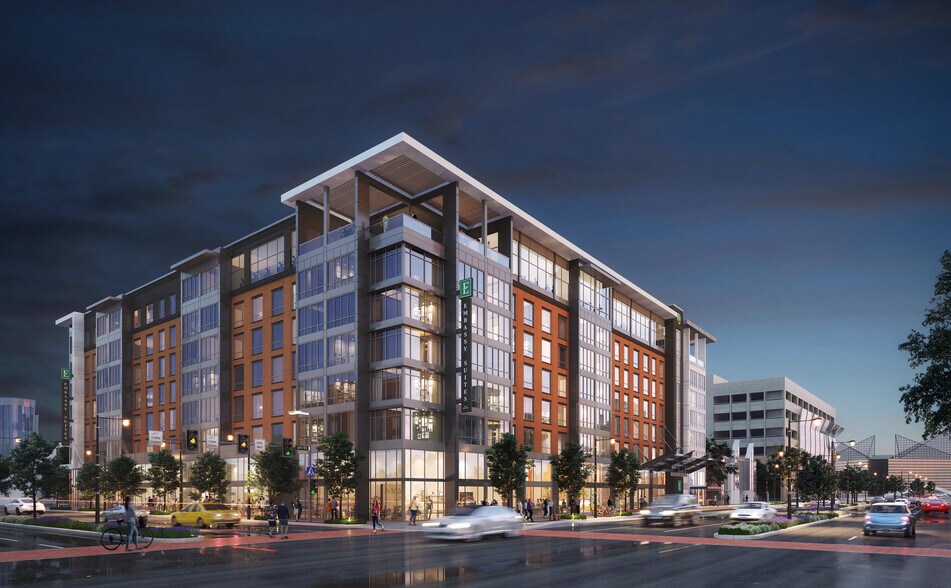 3 600 pc à louer au rez-de-chaussée des suites ambassade en construction au centre-ville de Chattanooga. L'espace de patio mesure 1 300 pi2. Le restaurant aura sa propre entrée sur la rue Broad.