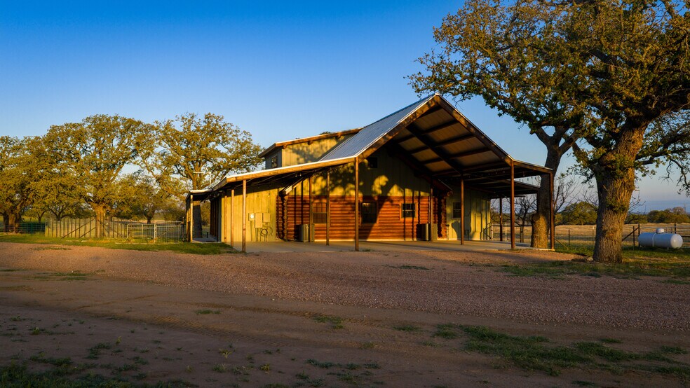A standout feature for daily ranch life is the oversized laundry and mudroom, offering built-in cabinetry, workspace, and a utility sink. Just off the mudroom is a full bathroom, providing convenient access after working cattle, spending time in the yard, or coming in from the barn—an intentional detail that adds to the functionality of the home. Outdoor living is just as intentional. The three-sided wraparound porch, finished with wood-lined ceilings, provides multiple covered seating areas and a natural extension of the home—ideal for taking in the surrounding landscape and keeping an eye on livestock and pasture conditions. The ranch infrastructure has been thoughtfully laid out to support both livestock and long-term land stewardship. A 60x40 metal barn anchors the improvements, complete with four mechanical roll-up doors, along with insulation, electricity, and water already in place. An attached covered awning extends the functionality of the barn, offering additional space for equipment storage or covered parking. Two additional equipment sheds provide further support for day-to-day operations. Working pens are conveniently located near the barn, allowing for efficient livestock handling, and the property is cross-fenced into multiple pastures to support rotational grazing and improved land management practices. The layout of the ranch allows for both ease of use and flexibility, whether running cattle or managing wildlife. Water is a strong attribute of the property, with a reliable house well supported by two irrigation wells positioned on both the east and west sides of the ranch. Multiple spreader dams traverse the property, enhancing water retention, slowing runoff, and contributing to the overall health and productivity of the native grasses. The land itself offers gently rolling topography, a strong presence of mature oak trees, and a setting that supports both agricultural use and recreation.
