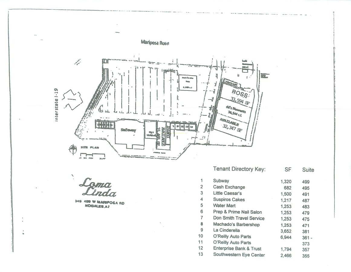 Loma Linda Plaza 351-499 W Mariposa Rd 15 465–48 402 pi² d'espace disponible • Commerce de détail • Nogales, AZ 85621