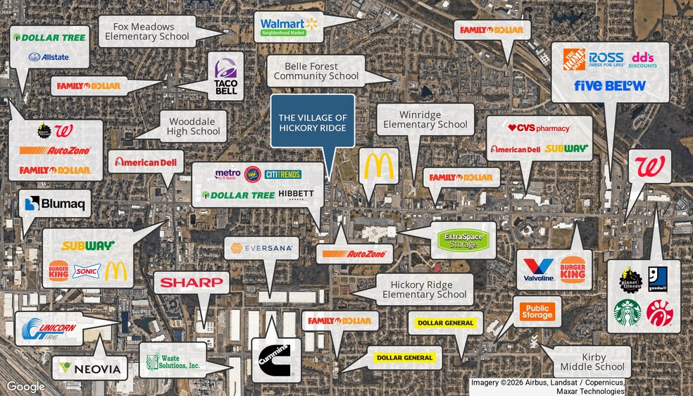 The Village of Hickory Ridge is a 17,194 SF, multi-tenant retail strip center located at 3538–3582 Hickory Hill Road in Memphis, TN. Built in 1984 and situated on approximately 1.4 acres. The property consists of 17 retail units designed to serve the surrounding neighborhood.