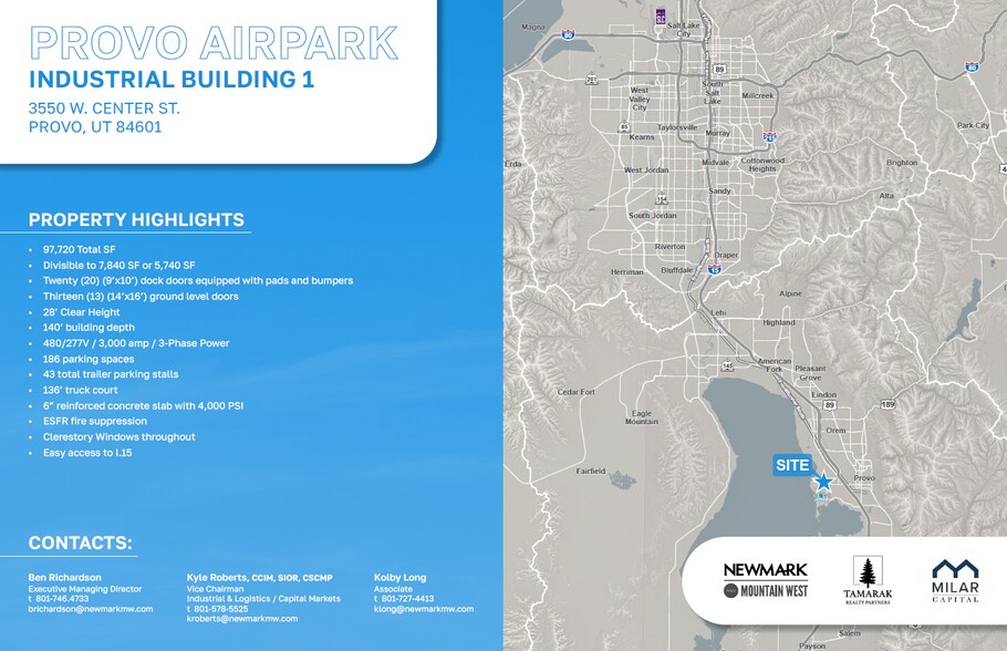Provo Airpark Industrial Building 1 3550 Center st 5 740–97 720 pi² d'espace disponible • Industriel • Provo, UT 84601
