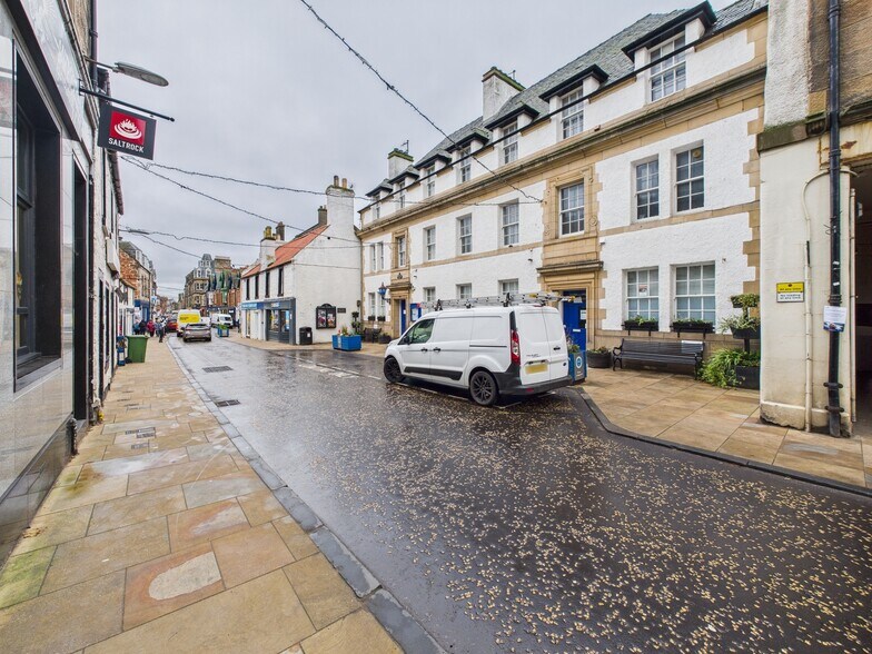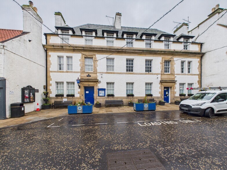 The property comprises an attractive three-storey, Category B listed terraced building of traditional stone construction beneath a pitched slate roof, with a single-storey rear extension. The property benefits from two separate entrances directly from North Berwick High Street, together with two additional access points to the rear via the private car park. The car park is accessed from Forth Street Lane and provides secure parking for up to six vehicles. Internally, the accommodation is arranged over ground, first and second floors, predominantly comprising cellular rooms served by two staircases. Kitchen and WC facilities are provided on each level, with shower facilities located on both the first and second floors. To the east side of the first and second floors are two self-contained residential flat dwellings, which can be accessed either internally or independently via the rear stairwell from the car park.