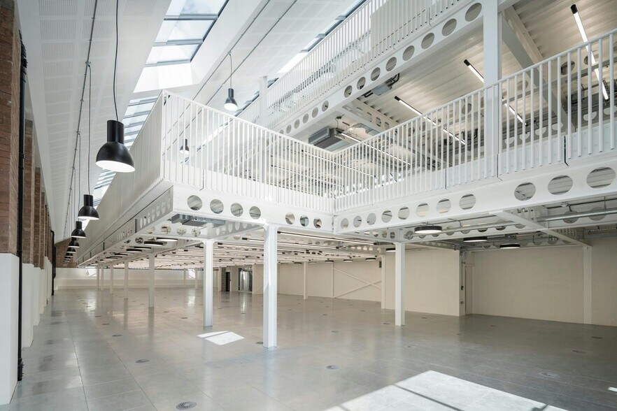 Le bâtiment a été soigneusement réinventé pour offrir des espaces de bureaux de haute qualité, flexibles et de caractère répondant aux exigences modernes. Il comprend un atelier lumineux et aéré de style entrepôt doté de vitrages de style Crittall du sol au plafond et d'une extension contemporaine de deux étages dotée d'un revêtement en acier corten avec l'ajout d'une cour paysagée attrayante.