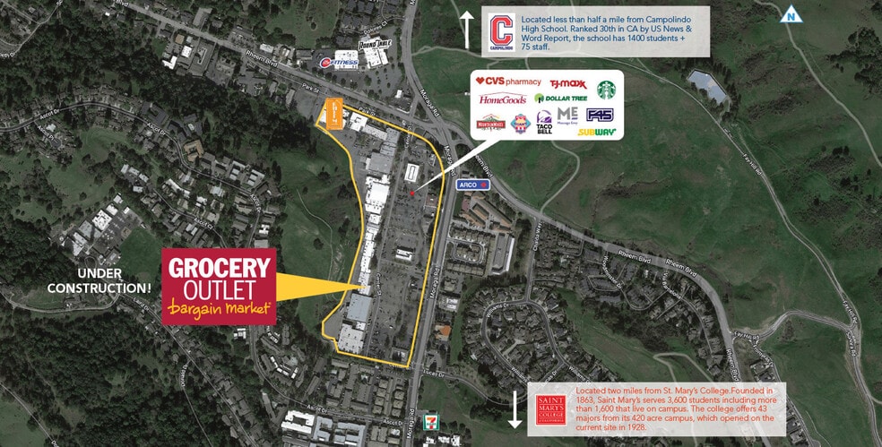 Espace de vente au détail disponible dans un centre communautaire très fréquenté Une nouvelle épicerie sera bientôt disponible ! - Forte gamme de locataires ayant des besoins quotidiens importants : CVS, TJ Maxx, Home Goods, Dollar Tree, F45 Training, Starbucks -Données démographiques exceptionnelles sur les zones de commerce -Situé à moins d'un mile de l'école secondaire Campolindo -Situé à deux milles du Collège St. Mary's