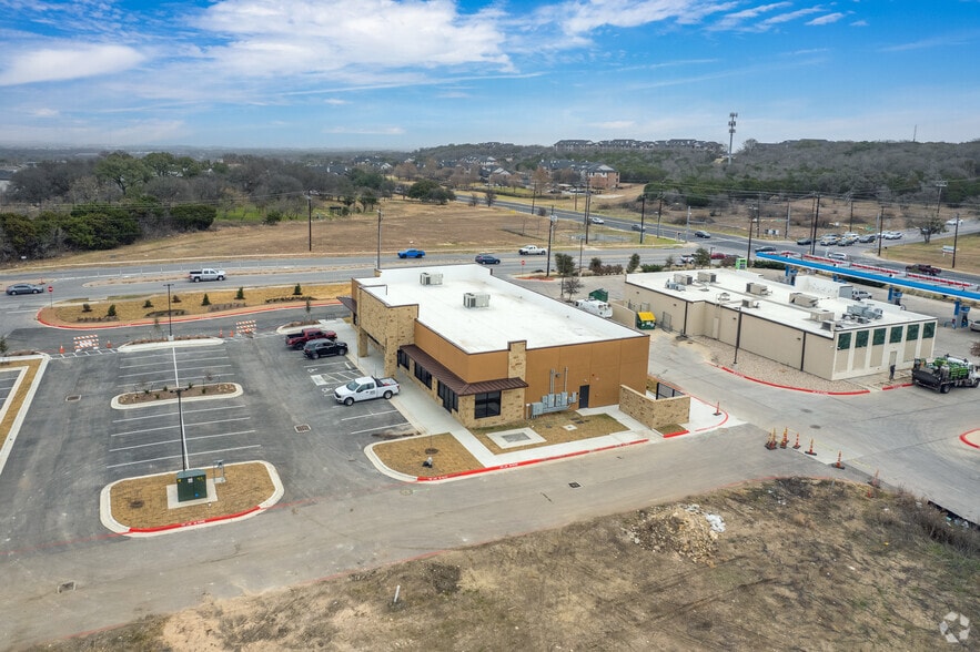 - Il se trouve au coin derrière un centre de décapage Valero et de vente au détail.