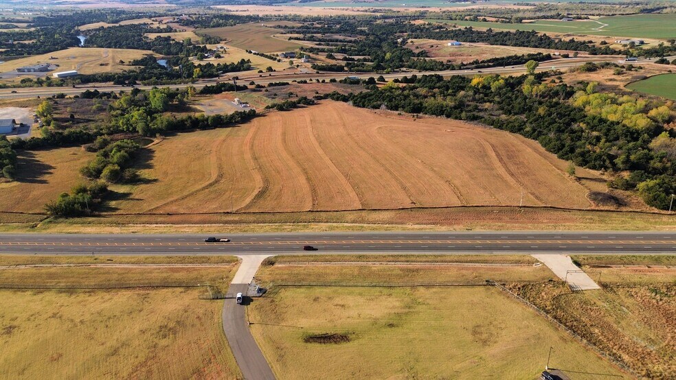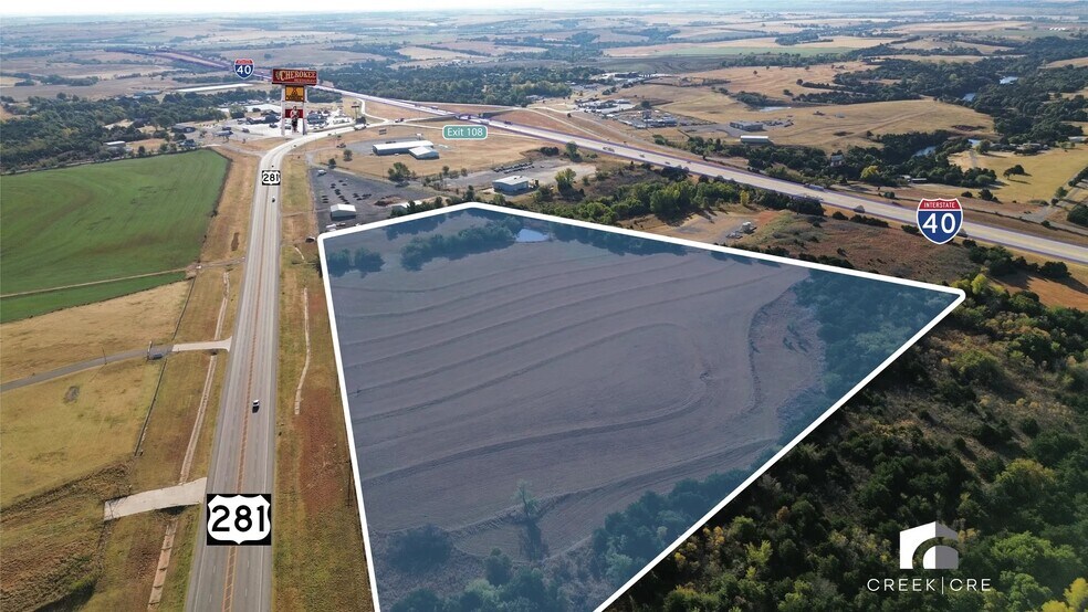This expansive 23.95-acre parcel in Calumet, Oklahoma offers exceptional visibility and accessibility just off Interstate 40 at Exit 108. Strategically positioned along Highway 281, the site is across from the well-known Cherokee Trading Post, capturing both interstate and local traffic.