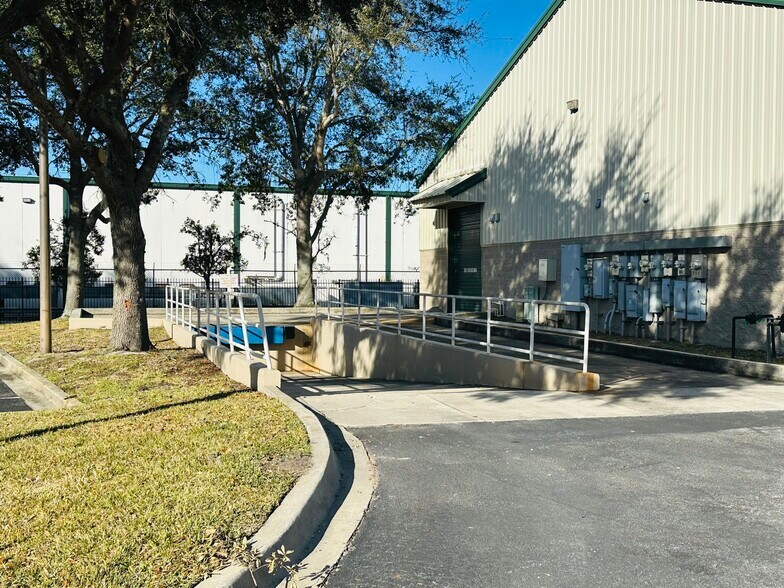 This 4,800 SF flex space features a 10' x 12' grade-level roll-up door, proximity to a loading dock, 80 SF of office, 2 restrooms, a shower, large front windows, and skylights allowing natural light.