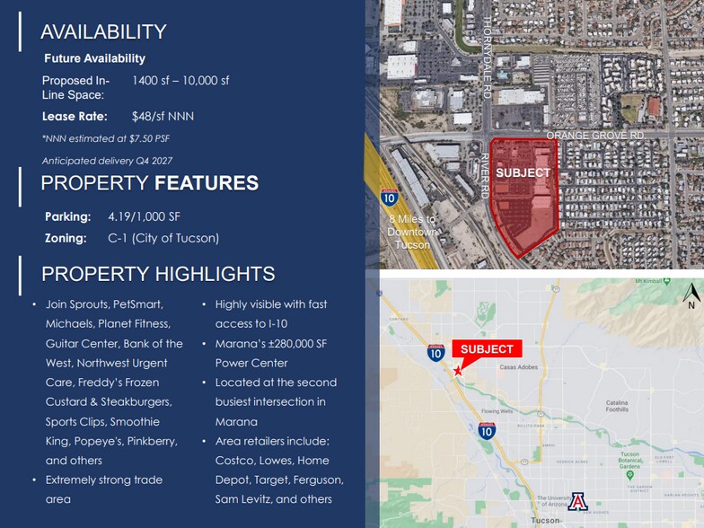 - Prime location at one of Marana’s busiest intersections with exceptional visibility and direct access to I-10