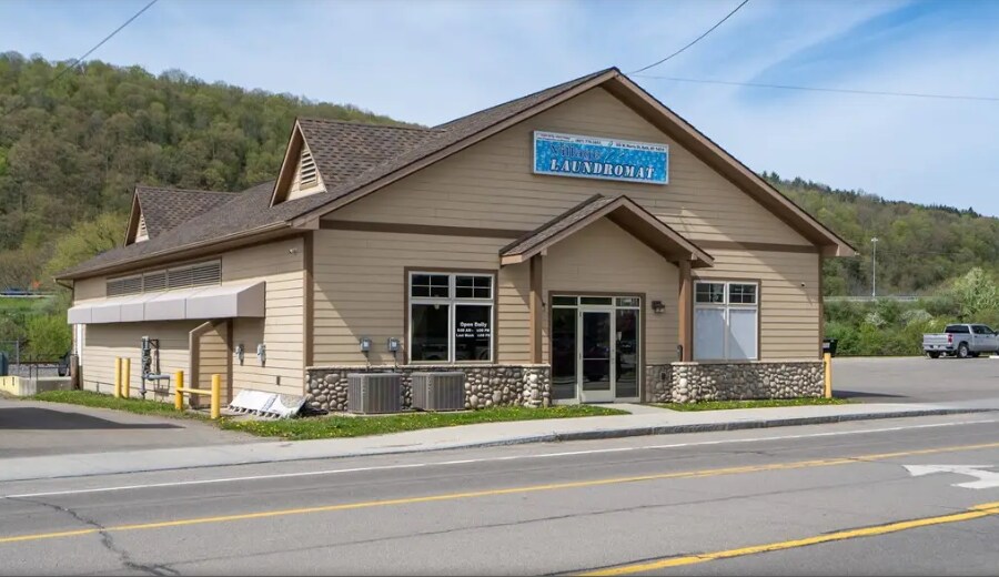 Exceptional opportunity to own a fully equipped, purpose-built laundromat located in the business district of Bath! This well-maintained commercial property was constructed specifically for laundromat use and is ready for immediate operation. The building offers over 3,400 square feet of functional space on a .28± acre lot, providing excellent accessibility, parking and visibility in a high-traffic commercial area. Inside, customers will appreciate the spacious waiting area, multiple vending options, and public restrooms. The laundromat is outfitted with a large number of commercial washers, dryers, and related equipment, all well-maintained and easily serviceable for efficient operation as well as a dedicated maintenance/utility room, and a private office (not photographed). Designed for practicality and customer comfort, this facility is optimized for workflow and maintenance. This turn-key business opportunity offers strong income potential in a well-established location—ideal for investors or owner-operators seeking a proven operation in the heart of Bath’s business district. Don't miss your opportunity to own this fantastic business/property!