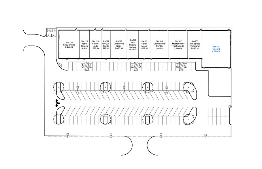 Situé juste à côté d'une promenade Kirby nouvellement élargie, le Centre de Kirby Ridge abrite de nombreux locataires de qualité. Le centre de Kirby Ridge dispose d'un double accès depuis Magnolia Parkway et Kirby Drive, ainsi que d'un accès facile au SH 288, qui reçoit environ 95 000 voitures par jour. Situé près du côté ouest, fort et en pleine croissance de Pearland, le Centre de Kirby Ridge est entouré de nombreux développements résidentiels, et de nombreux autres sont prévus à l'avenir. Suites 101 et 109 - Grand concept de salle d'exposition ouverte Bureau 105 - Plan d'étage à aire ouverte Suite 125 - Aire de réception à l'avant avec plusieurs espaces de bureaux