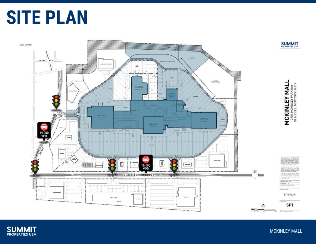 Locataires nationaux : Le centre commercial accueille des grandes marques telles que Best Buy, JCPenney, Old Navy et Barnes & Noble, générant un flux constant de visiteurs. Emplacement de choix pour le commerce de détail : Situé juste à côté de l'Interstate 90, McKinley Mall attire des clients des marchés locaux et régionaux, y compris du Canada et de la Pennsylvanie. Centre de divertissement familial : Des attractions comme Dipson Theatres, Climb & Play Party Café, KidzBounce 716 et le Skate Park créent un environnement animé et convivial pour les familles, où les enfants s'amusent pendant que les parents profitent de leur séance de magasinage.