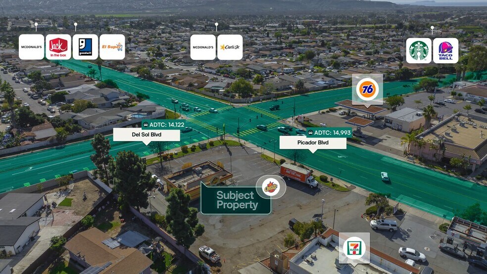 Surmount is pleased to present the exclusive listing for a Church's Chicken located at 3726 Del Sol Boulevard, San Diego, CA 92154. The site consists of roughly 1,228 rentable square feet of building space on an estimated .67-acre parcel of land. Church's Chicken is subject to a 30-year Triple Net (NNN) lease, which commenced 12.28.2004. The current annual rent is $76,316 and has scheduled increases of 1.50% Annually.