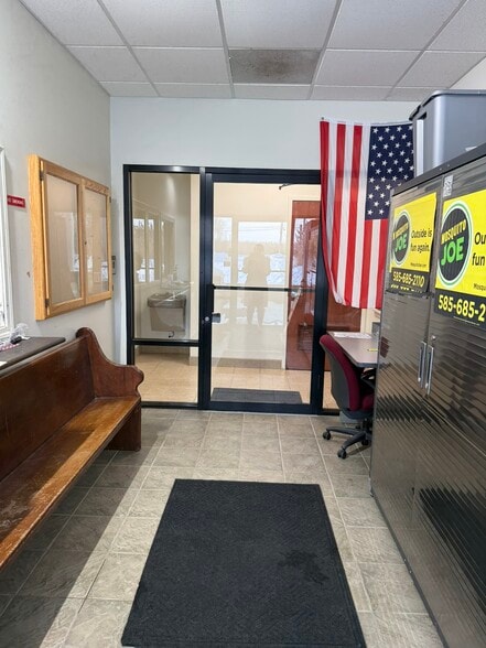 Looking for a great location to run your business? This turn key property is located right off the 390 and is surrounded by Lowe’s, Home Depot, petsmart, hobby lobby, Wegmans and many other prominent businesses. Previously this was used as a towing company and currently used as a body shop. This all block commercial building sits on about an acre, has 2000sqft of office and 3,200sqft of warehouse space. Office features include, Front reception area with pass through window, 2 restrooms one with a shower. Kitchen/break room, large conference room, 3 offices and another large meeting space. Features include drinking fountains, ADA compliant, central air, security and so much more! The warehouse has a fenced in large lot perfect for storage. A 12ft drive in door, laundry room, storage room, loft, 18ft ceilings, new windows, led lighting, generator, 8500lb lift(negotiable) So much opportunity here and so many more features!