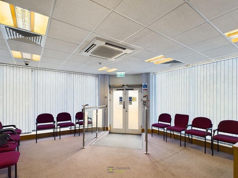 The property is in a prominent position on the corner of Kipling Buildings, London Road, North End. The property forms part of a parade of shops including a Spar, Premier, florist, public house, hairdressers and a number of retail shops, restaurants and takeaways London Road (A2047) leads northwards to the M27 which provides east and west motorway transport, and the A3 which provides access northwards towards London. The property comprises a corner unit currently arranged as meeting rooms, a front waiting room, a staff kitchen and bathroom facilities. the unit was last used as a Pip assessment centre and is set up as a waiting room, secure reception and access-controlled meeting rooms.