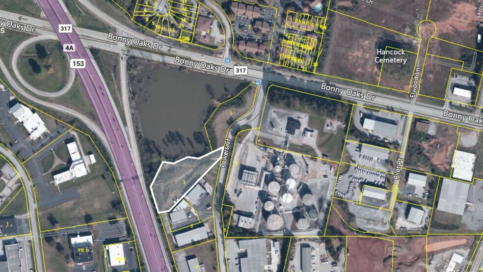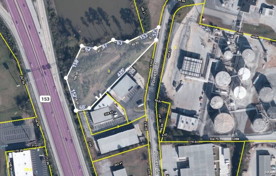 The property is located in the Industrial district on Powers Court just off Bonny Oaks and only 1/4 mile to Hwy 153. Consisting of 1.53 acres, the property has complete engineering plans by Cobb Engineering for a 10,000 sf facility to include parking, a loading dock pit and drainage and architectural plans for a metal building with architectural visual upgrades. A joint ingress/egress agreement exist with the adjacent property owner for a semi apron to enter and exit the property based on CDOT turn radius. The billboard owner has a perpetual easement in the NW corner of the property that has an active billboard permit (this WILL not affect the Buyer’s ability to build an on-premise sign for their business). The Billboard and Easement will not convey at the sale of the property.