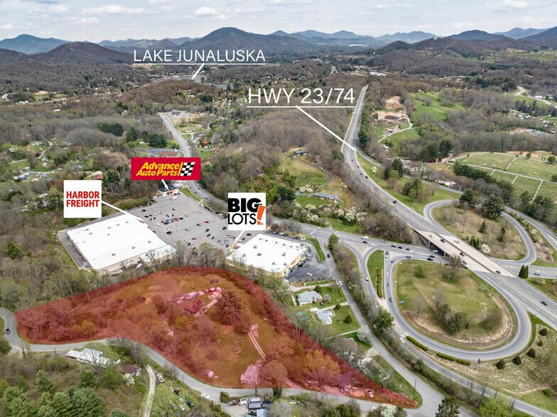 Opportunités infinies telles que multifamiliale, salle à manger ou hôtel sur cette propriété commerciale de premier choix située sur environ 4,96 acres avec un accès facile à 23/74/I-40 et à seulement 5 minutes du centre-ville de Waynesville avec services publics disponibles.