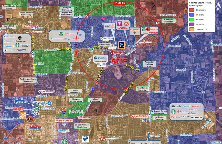 - 0.67 acre outlot - Ground Lease | BTS - Cross-access & parking with Arby’s - 35-vehicle parking easement on parcel to the south - Situated in Fort Wayne’s fastest growing corridor with over 1,000 new homes or multifamily units approved, under-construction, or completed within +/- 2 miles of the site - Located directly off I-69 interchange (77,216 VPD) at Dupont Road (32,305 VPD) - Conveniently accessible to two different stoplights and right-in-right-out along Dupont Road - Adjacent to Parkview Regional Medical Center which employs 6,250+ people and sees 9,000+ visitors each day