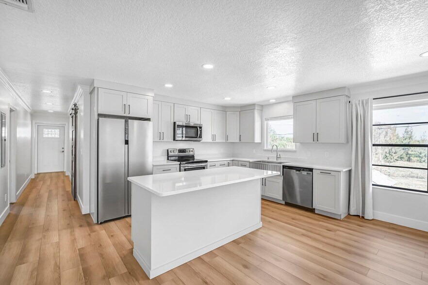 The second floor features a completely remodeled 2000 sqft apartment with 3 bedrooms, 2 bathrooms, and an in-unit laundry room. Enjoy views for the kitchen, living, flex space and primary bedroom. On the back of the apartment there's a 650 sqft partially covered deck overlooking the back of the property.