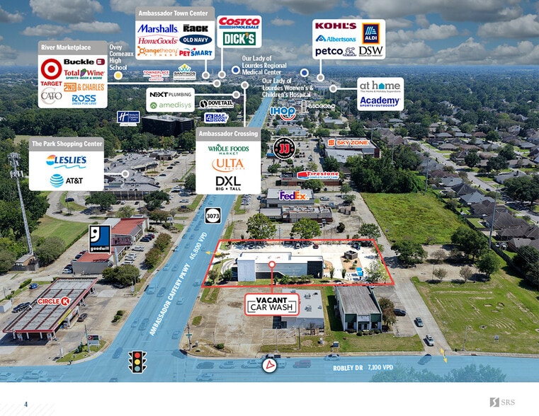 • The site is located at the hard-corner intersection of Robley Drive and Ambassador Caffery Parkway, with a combined average traffic count of 53,900 vehicles per day