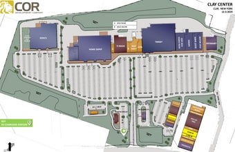 COR Center — Clay, NY - Environ 510 000 pieds carrés La plus grande ville du comté d'Onondaga, Clay a une superficie de 56,5 milles carrés et comprend une partie du village de North Syracuse. En banlieue de Syracuse, Clay se trouve à proximité de l'aéroport international Syracuse Hancock et des routes américaines 81 et 90. En tant que principal emplacement d'affaires à Clay, l'une des régions du centre de New York connaissant la croissance la plus rapide, le COR Center offre une occasion exceptionnelle pour tout type d'entreprise commerciale. Les visiteurs du Centre profitent d'une variété d'options de vente au détail et de restauration dans les vitrines qui offrent une atmosphère agréable et cohésive. Le Centre occupe plus de 515 000 pieds carrés d'espace, avec 1 000 pieds linéaires de façade routière sur un site de 100 acres. Bail foncier ou construction en fonction des possibilités de zonage commercial.