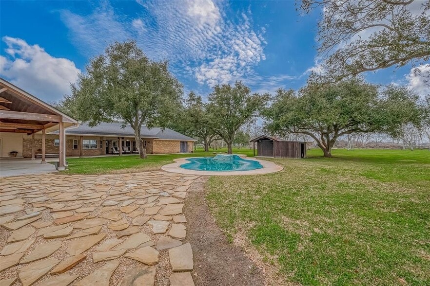 Welcome to this exceptional 26-acre property, blending country living with convenience! Located in Rosenberg, TX, this estate features a beautifully maintained 2,768 sq. ft. home with 5 bedrooms and 3 bathrooms, providing ample space for your family. The open-concept design creates a warm, inviting atmosphere. The backyard is perfect for entertaining with a private pool surrounded by a large yard. The property includes a 50x70 shop with a 20x50 lean-to for extra storage. It’s also equipped with a Generac generator. Additionally, you’ll find a 30x50 commercial building/office ideal for a business. This unique property offers endless possibilities for space, comfort, and convenience. Whether you need a family retreat or a place for work and leisure, don’t miss out. Prime Location! This property is feet away from Spur-10 and under two miles from Hwy 59, offering excellent accessibility and convenience. Seller is willing to split and sale 14 acres of the farmland separately.