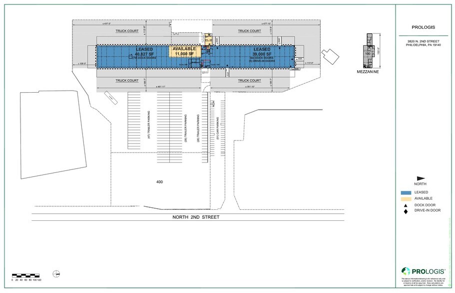 Hauteur libre de 18 pieds, 64 quais de chargement externes, 4 disques dans des baies et 4 000 pi2 d'espace de bureau