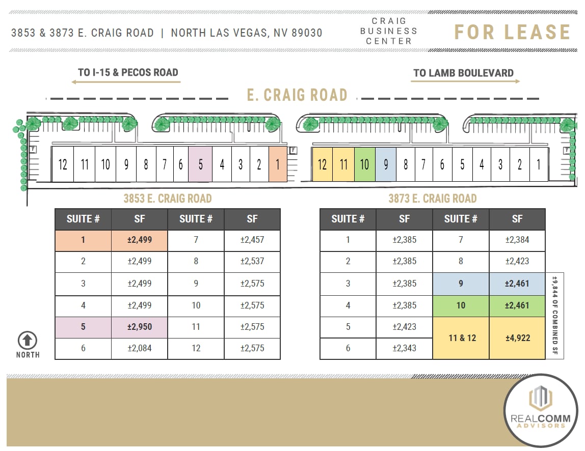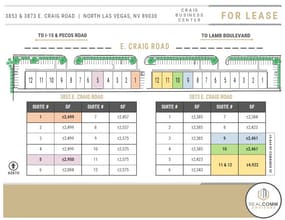 Le Craig Business Center est idéalement situé à ¼ mile à l'est de l'I-15, avec une exposition directe à Craig Road et est entouré de nombreux restaurants et commerces de détail. Avec une moyenne de ±94 500 voitures par jour et une signalisation bien visible pour toutes les unités, Craig Business Center se prête à une variété d'utilisations industrielles et commerciales.