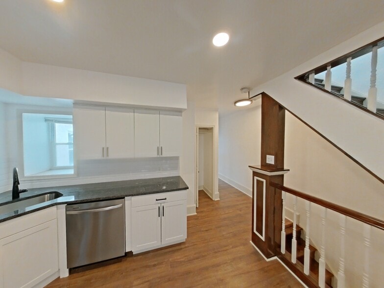 The upper unit is vacant and fully renovated, ideal for market-rate leasing or owner-occupancy. Updates include a new kitchen with granite countertops and stainless steel appliances, luxury vinyl plank flooring, upgraded baths, and in-unit laundry.