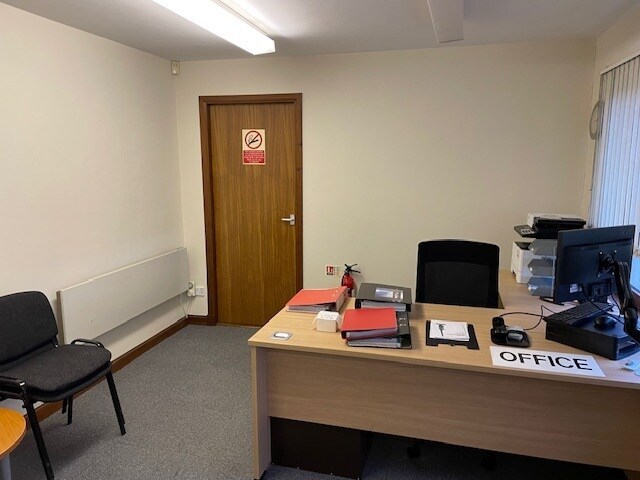 The subjects comprise a detached office / workshop unit arranged over the ground floor. The office / site is prominently located at the west gate of Balgay Cemetery in a predominantly residential area. Internally the subjects comprise an entrance hallway, two offices with a separate workshop area and WC. There is a yard / fenced site to the front.