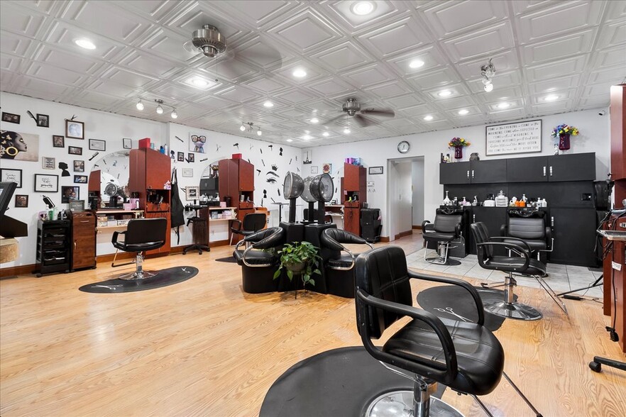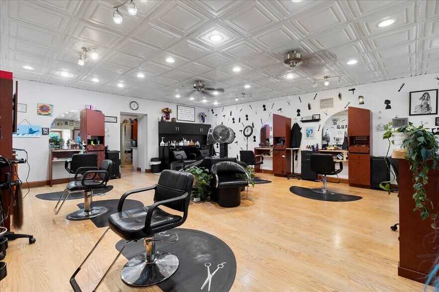 Currently set up as a salon & spa, but has many other potential uses. On the main level there are 5 style stations,2 wash stations & a large reception desk/waiting area. In the back you'll find locking cupboards, plenty of counter space, utility sink and large employee/client bathroom. Head down to the spacious basement from the main level or from a separate driveway side entrance. In the basement you'll find 3 spaces (2 private) perfect for spa services (Nail tech/Facial/Massage/Etc.). One private space includes a shower & salon sink. There is a 1/2BT, laundry closet and plumbing in place for 2 pedicure chairs. Perfect for additional rent revenue. The spacious 2BR,1BT second floor apartment offers a large kitchen with island and SS appliances, formal dinning room, laundry/mudroom combo.