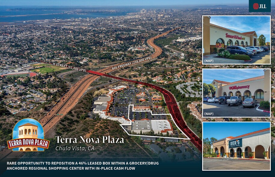 JLL has been exclusively retained by Ownership to offer qualified investors the opportunity to acquire a portion of Terra Nova Plaza (the “Property”), a 96,114 square foot asset within a premier ±301,000 SF regional shopping center in Chula Vista, CA. The Property is optimally positioned directly off the I-805 Freeway and H Street, benefiting from exceptional exposure to 257,000 vehicles per day. The offering features a fully stabilized asset that is 100% leased to two investment-grade tenants, Dick’s Sporting Goods boosting annual sales of$13.4B in 2025, alongside Floor & Décor with $4.69B in 2025 annual sales, providing investors with reliable in-place cash flow and long-term value in a high-traffic, sought-after retail corridor.