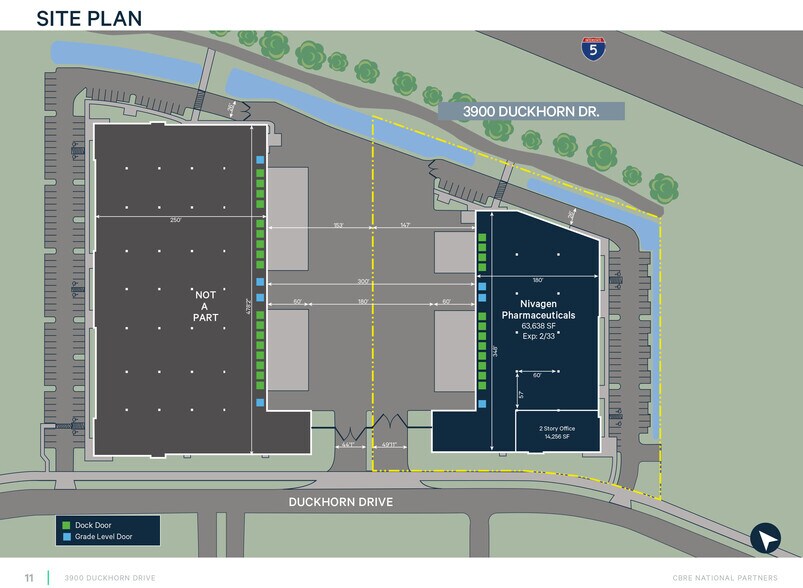 - Comprend 12 portes hautes de quai, 3 portes de niveau, court pour camions de 147 pi et baie de vitesse de 60 pi