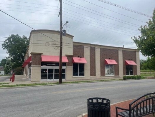 Un dollar familial vacant au coin de la rue W. Market et de la rue S. 39th St. Excellent bâtiment avec une façade en brique et de nombreuses vitrines de magasins.
