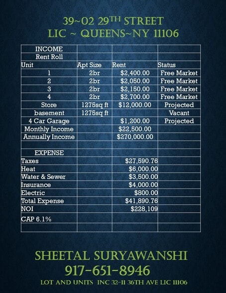 COIN 4 USAGE MIXTE FAMILIAL À LONG ISLAND CITY Occasion rare — propriété à revenu à flux de trésorerie élevé au cœur de Long Island City.