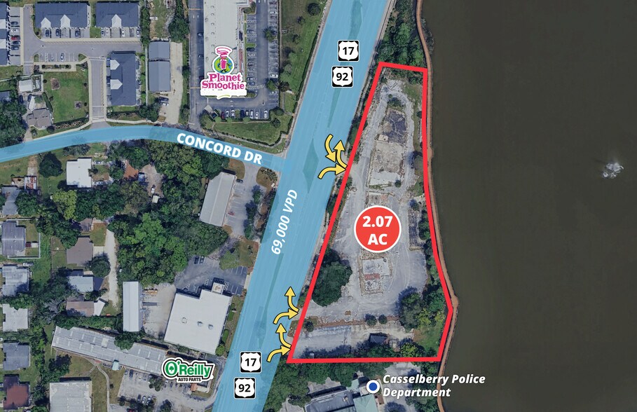 - Emplacement à haute visibilité : Trois points commerciaux disponibles à une intersection signalisée sur la route américaine 17-92, un important corridor commercial, fort nombre de trafic