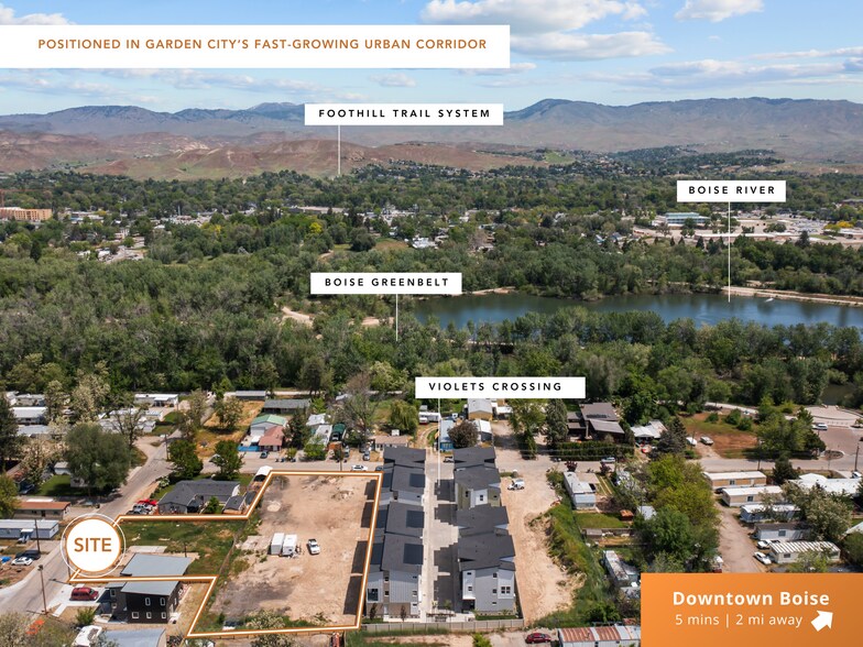 Carolyn Circle stands out as an exceptional investment opportunity in Garden City's thriving real estate landscape, boasting an A+ location mere steps from the Boise River and Greenbelt, and adjacent to the bustling energy of Downtown Boise. This high-end townhome and multi-family development, features 29 premium units spanning over 22,055 square feet of sophisticated living space, fully entitled and with construction drawings on the immediate horizon. Buyers will capitalize on its seamless blend of urban sophistication and natural allure, with residents enjoying effortless access to scenic walking trails, wine tastings at nearby venues, craft breweries, live music spots, a vibrant boardwalk, and seasonal river floating adventures. Priced as a compelling value in a market surging with Idaho's population growth and economic momentum, this property promises outstanding rental yields and resale upside, making it a savvy acquisition for investors seeking long-term appreciation in one of the nation's hottest housing sectors. What elevates Carolyn Circle to a must-buy deal is Garden City's explosive transformation, driven by landmark developments that enhance desirability and property values across the board. Key catalysts include the forthcoming College of Western Idaho River District campus, launching in fall 2027 with cutting-edge business and tech programs to bolster local workforce talent; the massive $1.17 billion St. Luke's Health System expansion, rolling out advanced healthcare facilities into the late 2020s; and the 50-acre Park at Expo Idaho, already under construction since 2024 and slated for a 2026 opening, complete with trails, skate parks, and expansive green spaces. Adding to the allure is Idaho's lone professional sports team, Athletic Club Boise of the USL, with its new stadium just minutes away via the Greenbelt. With superior connectivity to the broader Treasure Valley through major highways, parks like Esther Simplot and Mystic Cove, and cultural hubs such as the Western Idaho Fairgrounds, this project offers unmatched accessibility, positioning it as a high-return gem in a rapidly appreciating area.