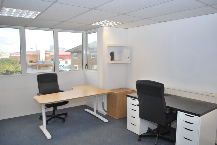 A ground floor trade counter, office and warehouse fronting Davis Way. The property is accessed via a pedestrian door into a trade counter/reception area. There is fluorescent lighting, gas central heating and most of the flooring is lino. There are some private offices, and storage space, WC and Kitchen.