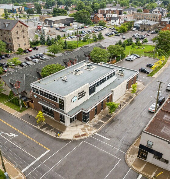 Construite sur mesure en 2019, le 4, rue Pine Nord est une clinique vétérinaire polyvalente conçue pour maximiser l’efficacité médicale et l’adaptabilité. Idéale pour un refuge pour animaux, une clinique médicale, des services de toilettage ou une combinaison de ces usages. L’immeuble comprend des finis de qualité supérieure, des salles d’examen et d’hospitalisation, des espaces d’entreposage, une salle d’attente moderne et des systèmes de ventilation de calibre professionnel. Il s’agit d’une occasion exceptionnelle d’acquérir un espace spécialement aménagé pour les soins vétérinaires.