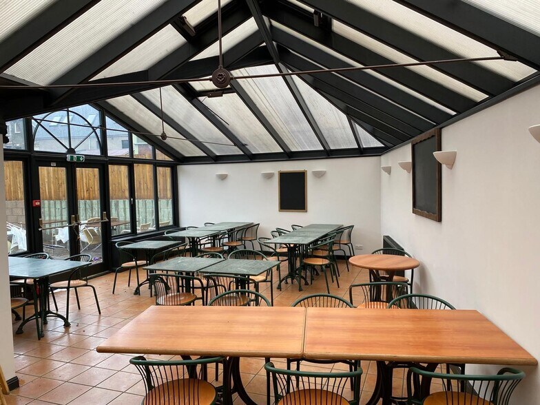 There is a large single storey extension to the rear of brick construction with a flat roof and a further conservatory extension which leads to a small patio surfaced external eating area. Internally the restaurant accommodation is divided into an ‘L’ shaped area and provides for around 100 covers. There are associated toilet facilities and fully fitted kitchen.