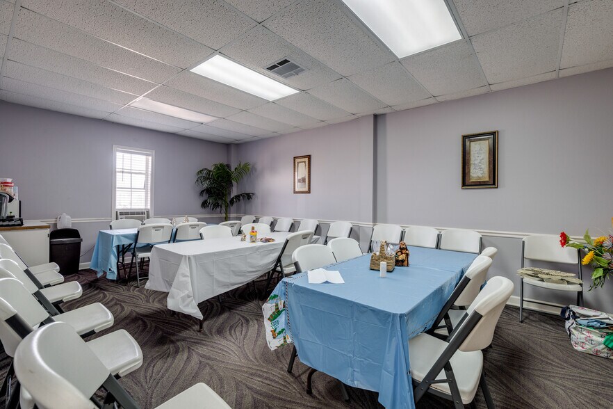 The church building features a well-designed layout including a spacious sanctuary, welcoming lobby/foyer, pastor’s office with private bath, three additional offices, nursery, multiple classrooms/meeting spaces, and a total of four restrooms, supporting a variety of ministry and community functions.