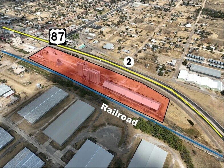 Très grande quantité d'espace de stockage industriel ainsi que des silos à grains dans la ville de Tulia, tous situés le long du chemin de fer. Plusieurs éperons de rails sont offerts sur les différentes propriétés en vedette.
