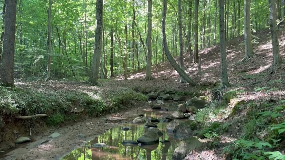 Forêt de feuillus mystique d'une beauté incroyable avec ruisseau rocheux de 3/4 milles de long, environ 15 acres ouverts. Situé à environ 20 milles au nord de Greensboro, en Caroline du Nord. Le terrain se trouve à seulement 1/2 mile de l'eau du célèbre lac Belews en ski nautique. Pics : CLIQUEZ QRL