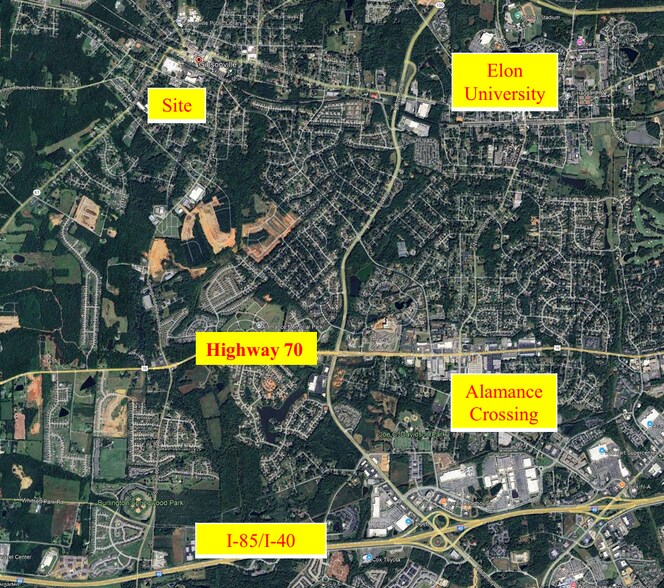 Vacant entitled apartment land in "the middle of everywhere." Between the growing Triad and Triangle metros, Gibsonville is an established, expanding community. This is off combined I-40 / I-85, exits 138 and 140. It is also near Highway 70, the regional mall Alamance Crossing, Elon University, and an established historic downtown. The adjacent 440K SF mill is Gibsonville Square, which is undergoing a mixed use historic rehabilitation. See the property flyer for maps and more details. Full details are available via request in a dropbox.