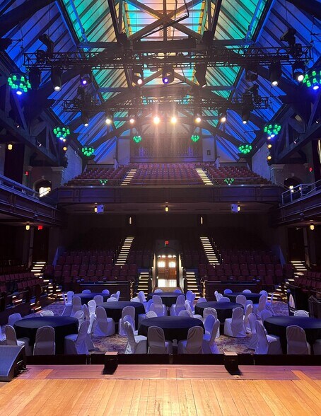 The recent comprehensive renovation preserved the character and lost arts of the original design while delivering modern functionality, including new HVAC systems, full ADA accessibility, and a stunning restoration of the iconic stained-glass windows. The offering includes an extensive inventory of furnishings, fixtures, and equipment, such as event tables, chairs, linens, and décor—allowing new ownership to open the doors immediately with everything in place.