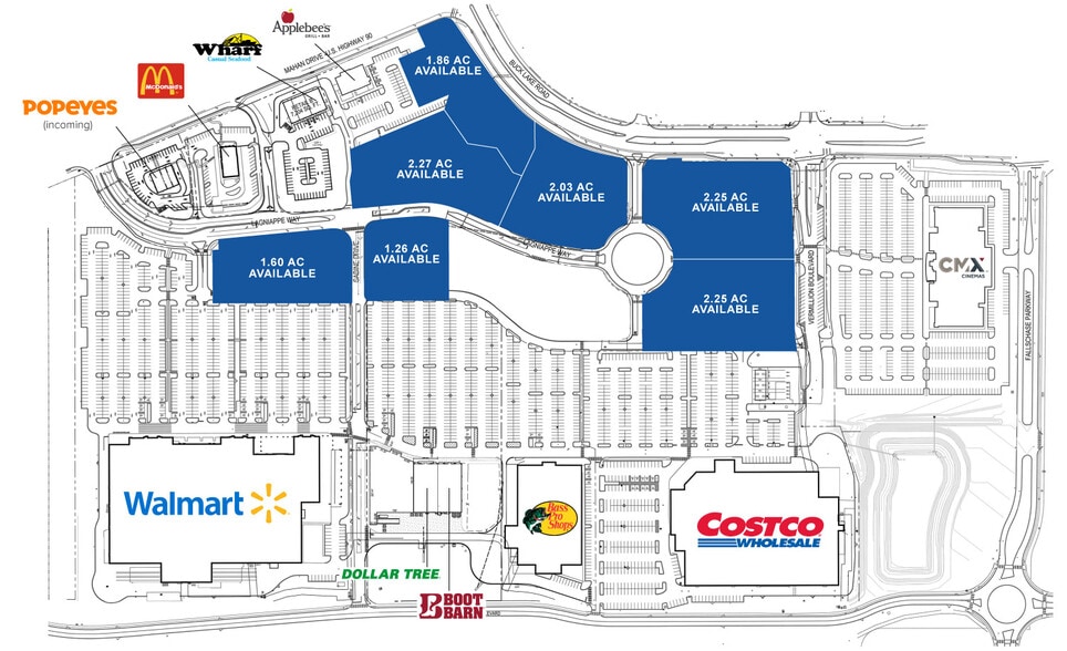 Terrain de 1,6 acre sur la voie Lagniappe devant Walmart