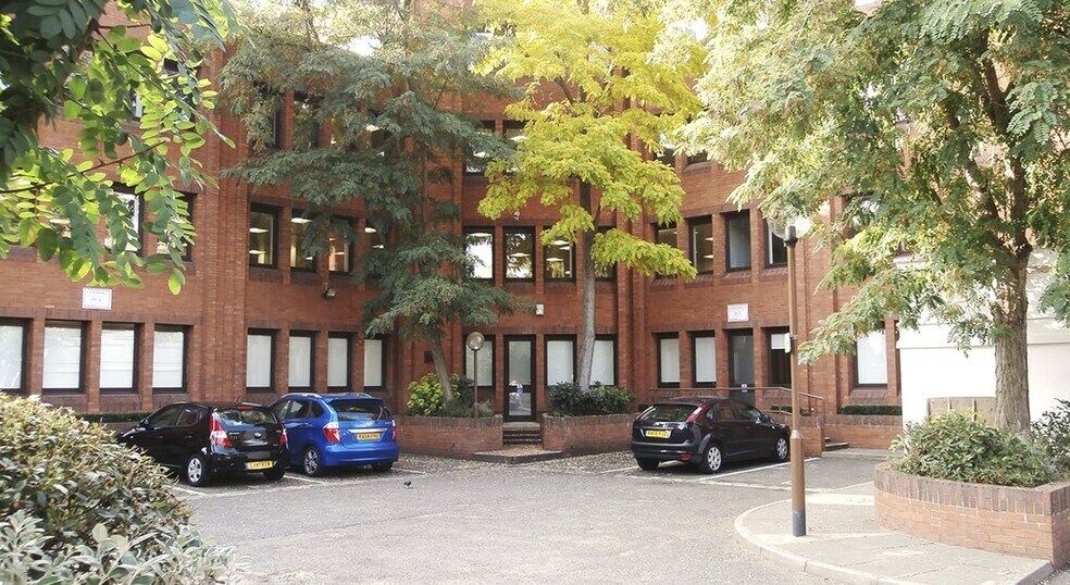 A red brick clad modern office building built over 4 floors, with an impressive architectural entrance; roof terrace on the 3rd floor and an excellent parking ratio. The ground, first and part third floors are available separately or in their entirety.