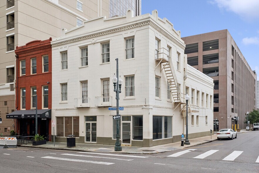 Available for lease, 401 Baronne Street presents a highly visible ground floor opportunity at the corner of Baronne and Perdido Streets, well suited for retail, café, restaurant, or office use. The space features a partial café buildout, full storefront windows providing strong natural light and visibility, dedicated back-of-house prep/office/storage areas, and rear alley access for loading and deliveries. Positioned in the heart of the CBD, the property benefits from steady foot traffic and immediate proximity to major hotels, restaurants, and New Orleans attractions, making it an ideal location for a customer-facing concept seeking strong visibility and accessibility.
