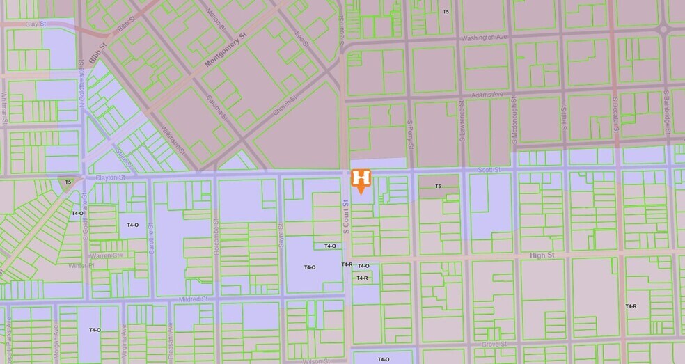 - 196’ of frontage on Scott Street and 200’ on S. Court Street