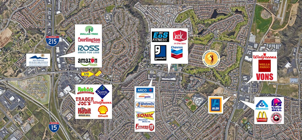Situé à seulement deux intersections de l'autoroute I-215/I-15, ce centre offre une visibilité imbattable avec un potentiel de signalisation très médiatisé. Profitez d'un excellent accès depuis Murrieta Hot Springs Rd. avec des points d'entrée pratiques à gauche et à l'entrée droite/droite. Bénéficiant d'un aménagement spacieux et d'un rapport de stationnement impressionnant de 9 places par 1 000 pi2, cet établissement est idéal pour les détaillants qui cherchent à se démarquer.