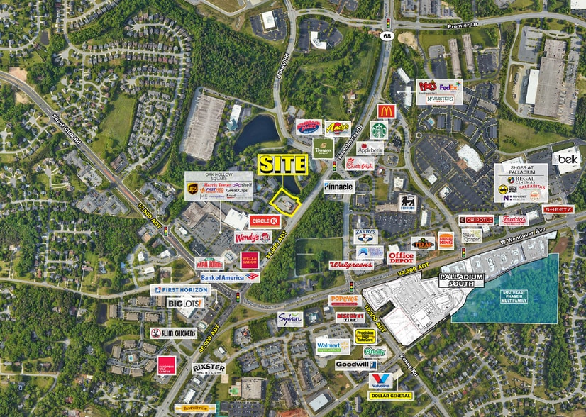 Former 3,022 SF drive-thru QSR on 1.69 Acres Outparcel is adjacent to Oak Hollow Square Surrounded by dense residential and strong daytime population Multiple points of access including a full access point closest to the site from N.C. Hwy 68 (31,000 ADT) High barriers of entry Future NCDOT changes shown as STIP Project No. U-5974